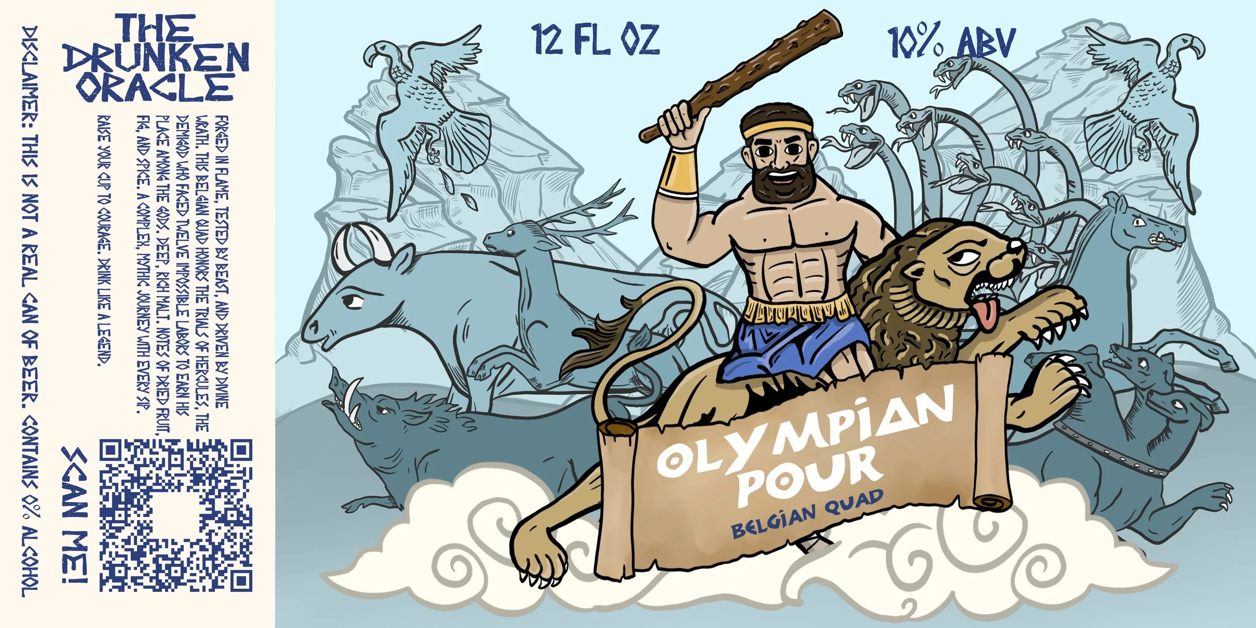 The series consists of five original illustrations paired with five label designs each inspired by a different mythological tradition. Spanning from Greek to Norse to Chinese,